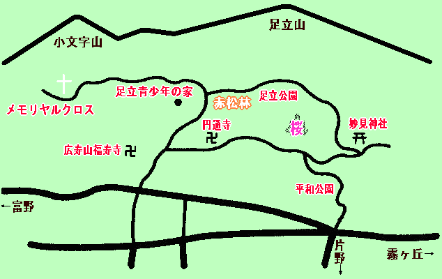 足立山の麓を小倉の街並みを見ながら北に10分程歩くと
